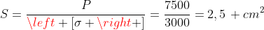 ![S=\frac{P}{\left [\sigma \right ]}=\frac{7500}{3000}=2,5\, cm^2](http://latex.codecogs.com/gif.latex?S=\frac{P}{\left [\sigma \right ]}=\frac{7500}{3000}=2,5\, cm^2)